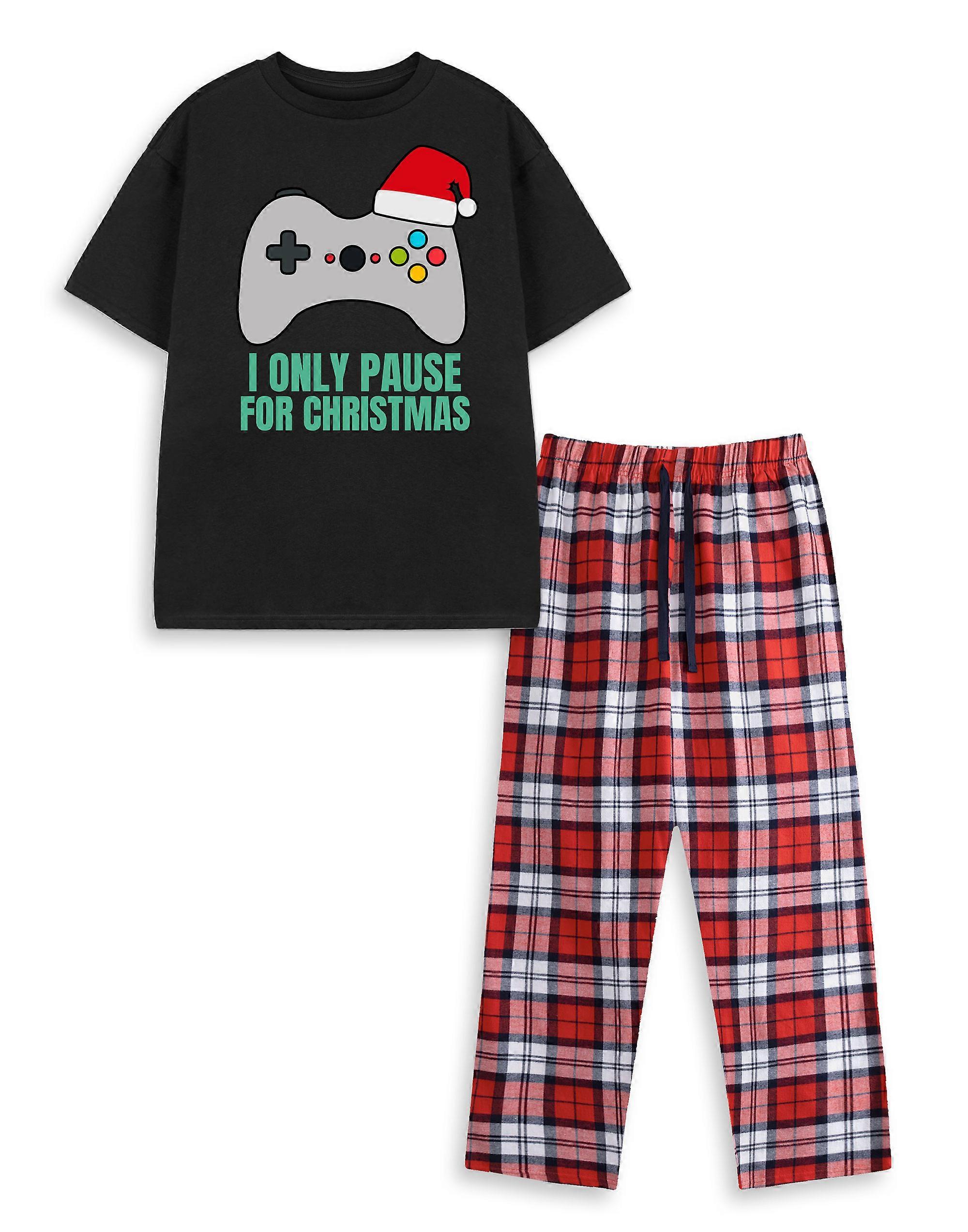 Show Me The Merch Unisex Kids Short Sleeve Long Leg Pyjama Set Black Pause - 9-10 Years