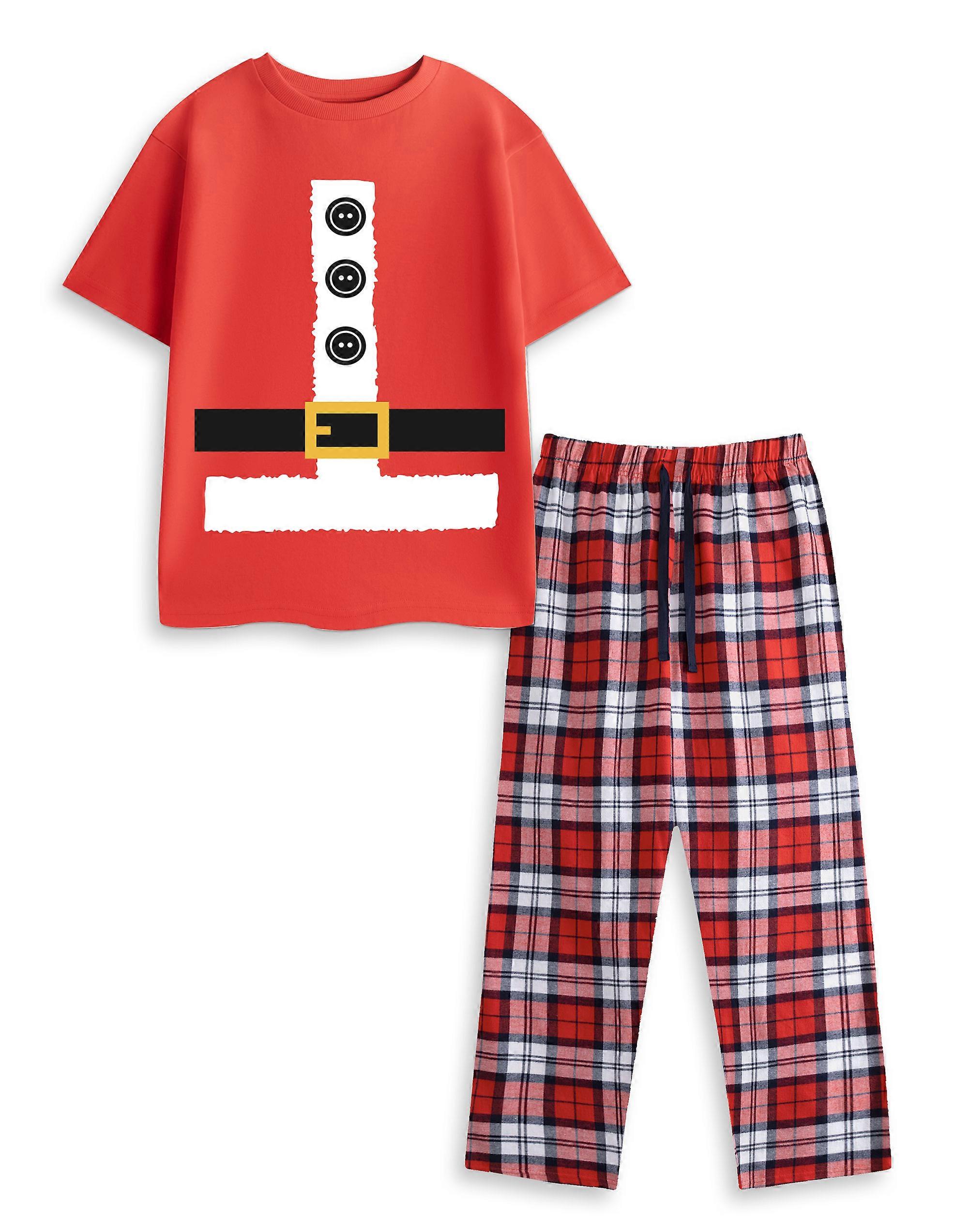 Show Me The Merch Unisex Kids Short Sleeve Long Leg Pyjama Set Red Santa - 2-3 Years