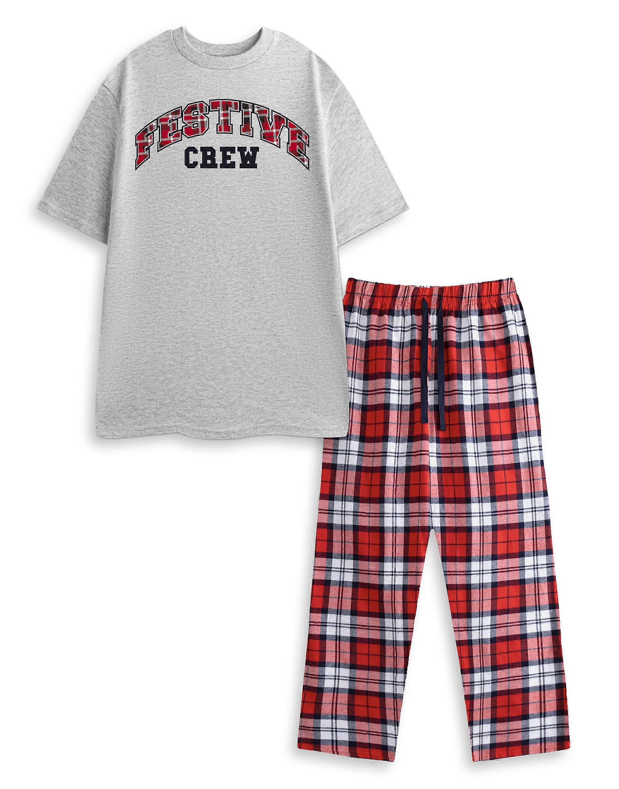 Show Me The Merch Unisex Short Sleeve Long Leg Pyjama Set Grey Festive Crew - X-Large