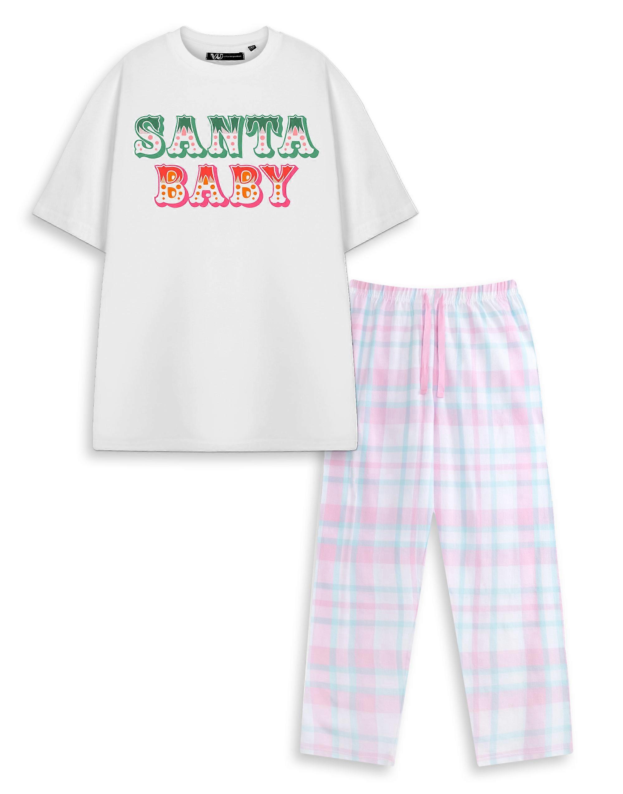 Show Me The Merch Unisex Short Sleeve Long Leg Pyjama Set White Santa Baby - XXX-Large