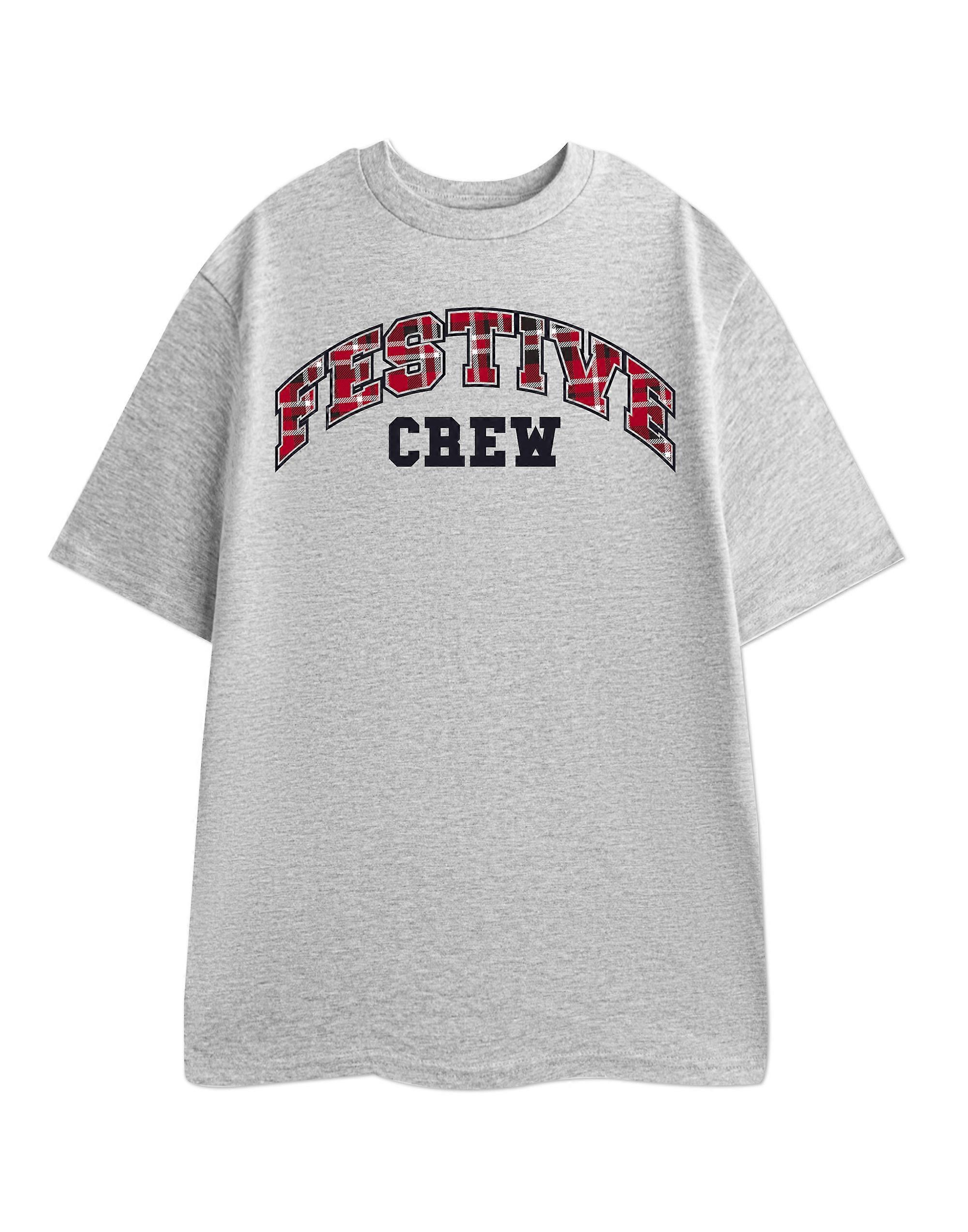 Show Me The Merch Unisex Short Sleeved T-Shirt Grey Festive Crew Grey - Medium