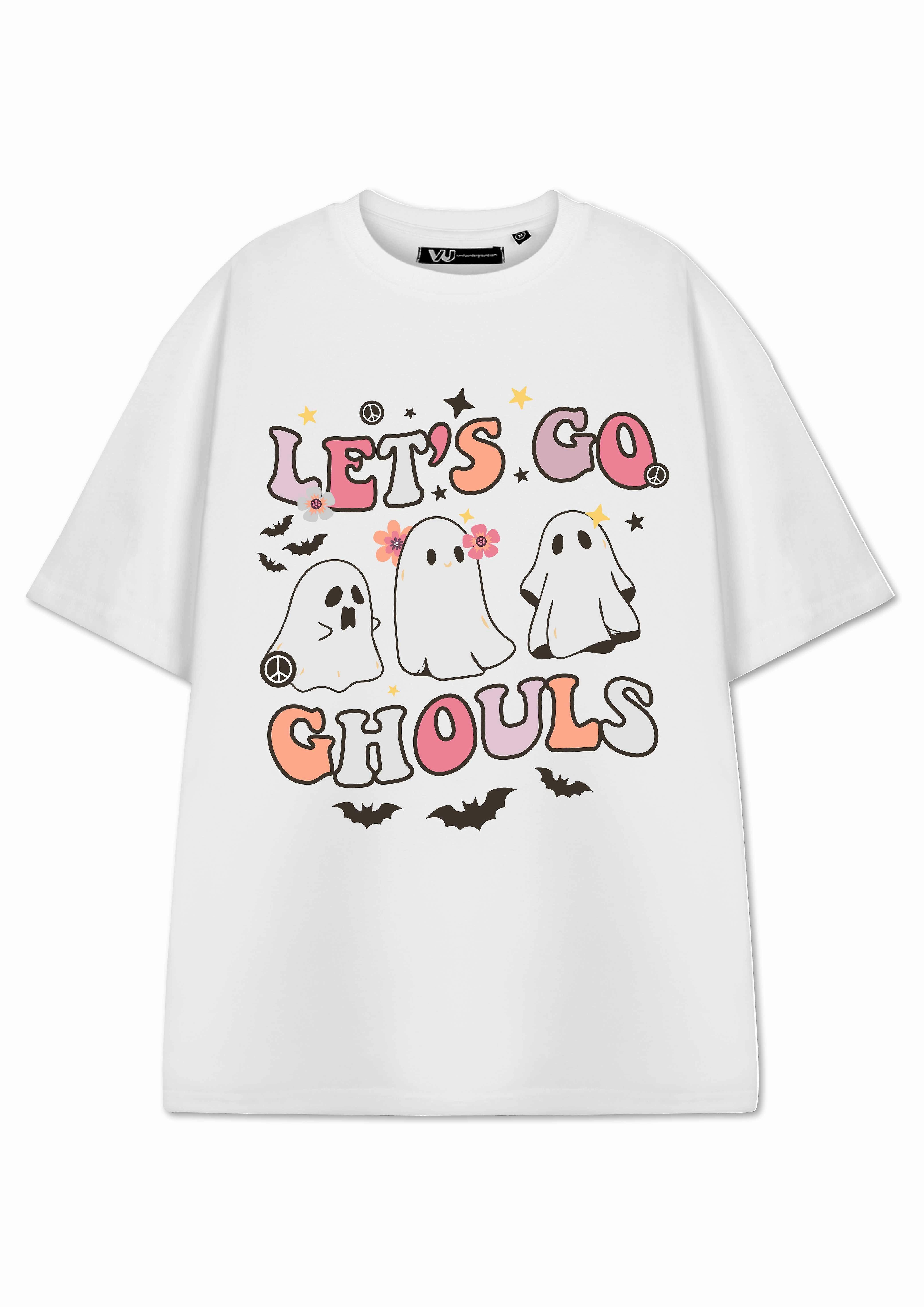 Show Me The Merch Womens Short Sleeved T-Shirt White Let's Go Ghouls