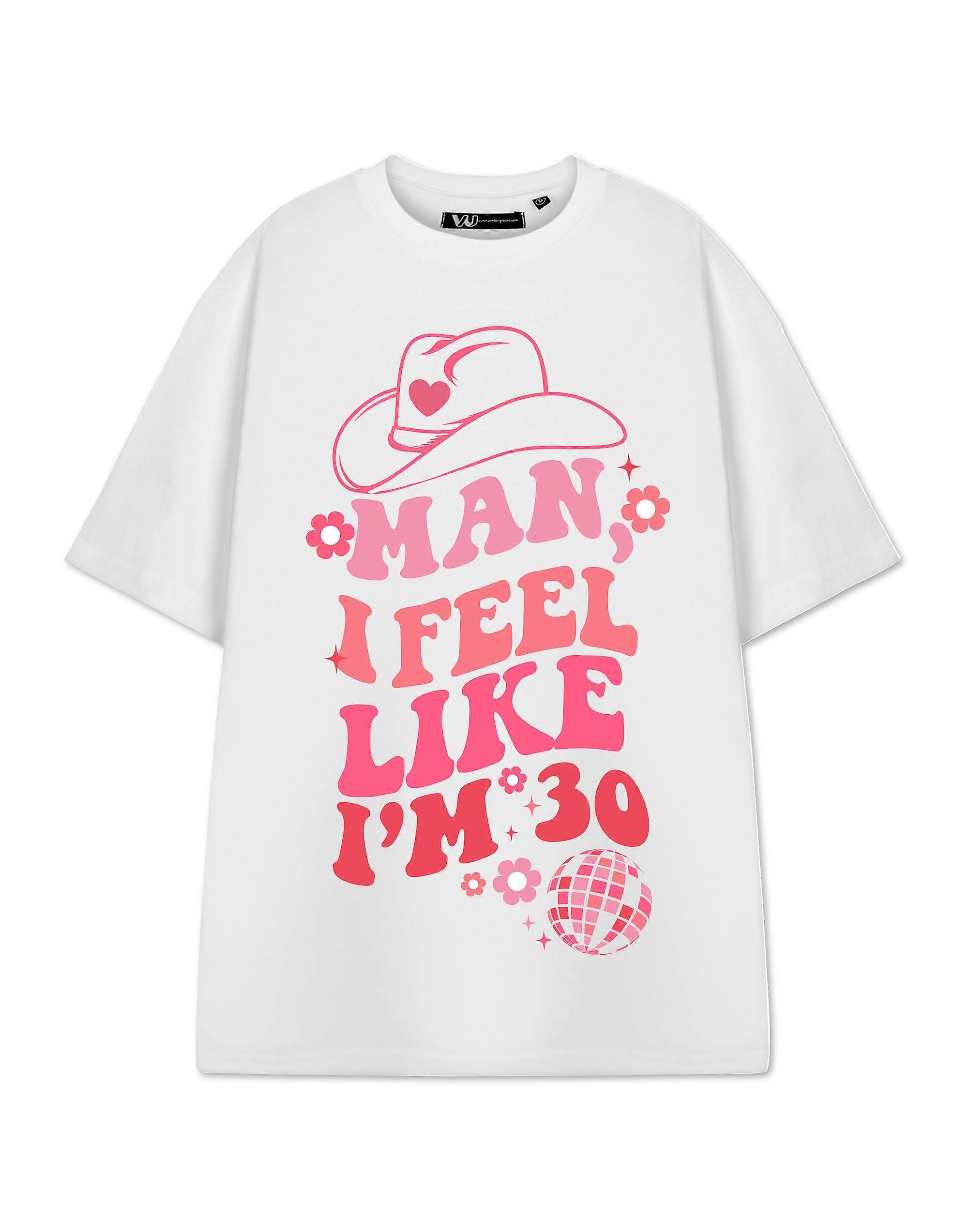 Show Me The Merch Womens Short Sleeved T-Shirt White Man I Feel Like I'm 30