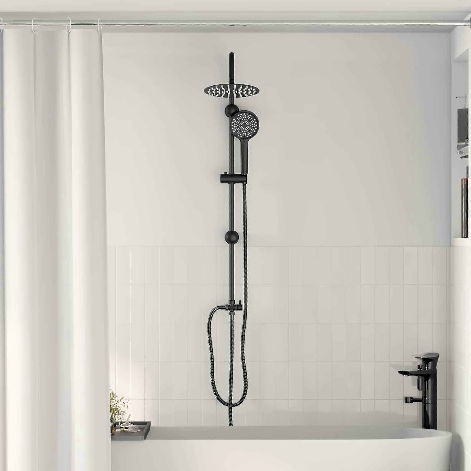Farbe: SchwarzGesamtabmessungen: 47 x 20 x 95 cm (L x B x H)Hauptmaterial: EdelstahlSekundäre Materialien: Messing, ABSDuschkopfgröße: 20 x 20 x 4,5 cm (L x B x H)Handbrausegröße: 25,5 x 12 x 4 cm (L x B x H)Schlauchlänge: 150 cmAnzahl der Düsen (Duschkopf): 70Kippbar2-in-1 DuschsystemVerstellbarer Kopf: dreht sich 360° und neigt sich 15° nach oben und unten, einfach drehen, um die Modi zu wechselnDrehschlauchHandbürste mit drei FunktionenEinfach drehen, um die Modi zu wechselnNur für den InnenbereichMontage erforderlich: JaLieferumfang:1 x Duschkopf Set