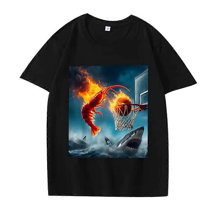Shrimp Dunking on Shark Graphic Tee Retro Fishing Meme TShirt Women Short Sleeve Summer Tops Aesthetic Clothes Summer Streetwear
