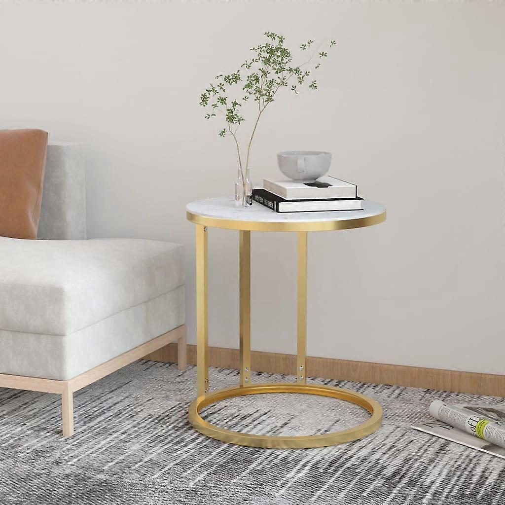 Beistelltisch Golden und Weiße Marmor-Optik 45 cm Hartglas