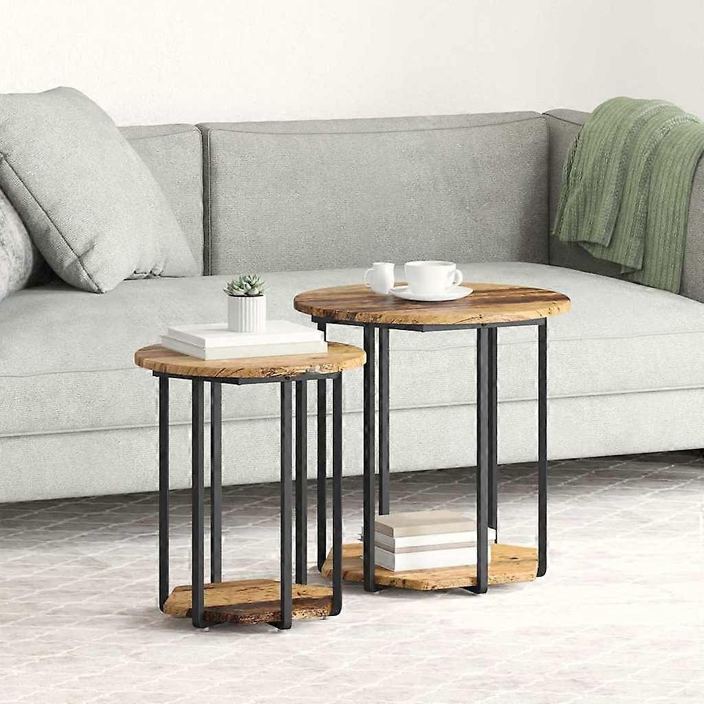 Dieses stylische Set aus Ingenieurholz-Beistelltischen bringt industriellen Charme in dein Wohnzimmer. Perfekt für urbane Lofts oder moderne Räume haben diese Tische eine robuste, rohe Anziehungskraft und verwandeln Materialien in funktionale Kunst. Ihr vielseitiges Design lässt sie neben Sofas oder Stühlen stehen und bietet eine praktische Fläche für Lampen, Getränke oder Deko. Materialien: Dieses Beistelltischset aus Ingenieurholz und Metall kombiniert die Stärke von Metall mit dem eleganten Aussehen von Holz. Die Materialien sorgen für Stabilität und Haltbarkeit, um täglichem Gebrauch in verschiedenen Umgebungen standzuhalten. Inklusive Komponenten: Die Tische verfügen über Regalplatten für einfache Aufbewahrungslösungen, perfekt zum Ausstellen von Büchern oder Deko. Die Metallrahmen bieten zusätzliche Unterstützung und ergänzen den industriellen Stil. Funktionen/Funktion/Design: Mit ihrer robusten Bauweise sind die Beistelltische auf Langlebigkeit ausgelegt. Diese Widerstandskraft macht sie zu einer zuverlässigen Ergänzung jedes Wohnraums. Empfohlene Verwendungen: Ideal für das Wohnzimmer, ergänzen sie auch Schlafzimmer und bieten Platz für persönliche Gegenstände. Ihr zeitloses Design passt zu verschiedenen Einrichtungsstilen. Pflege & Wartung: Einfach mit einem feuchten Tuch abwischen, um sie sauber zu halten. Ihre pflegeleichten Anforderungen garantieren eine frische und attraktive Oberfläche mit minimalem Aufwand.