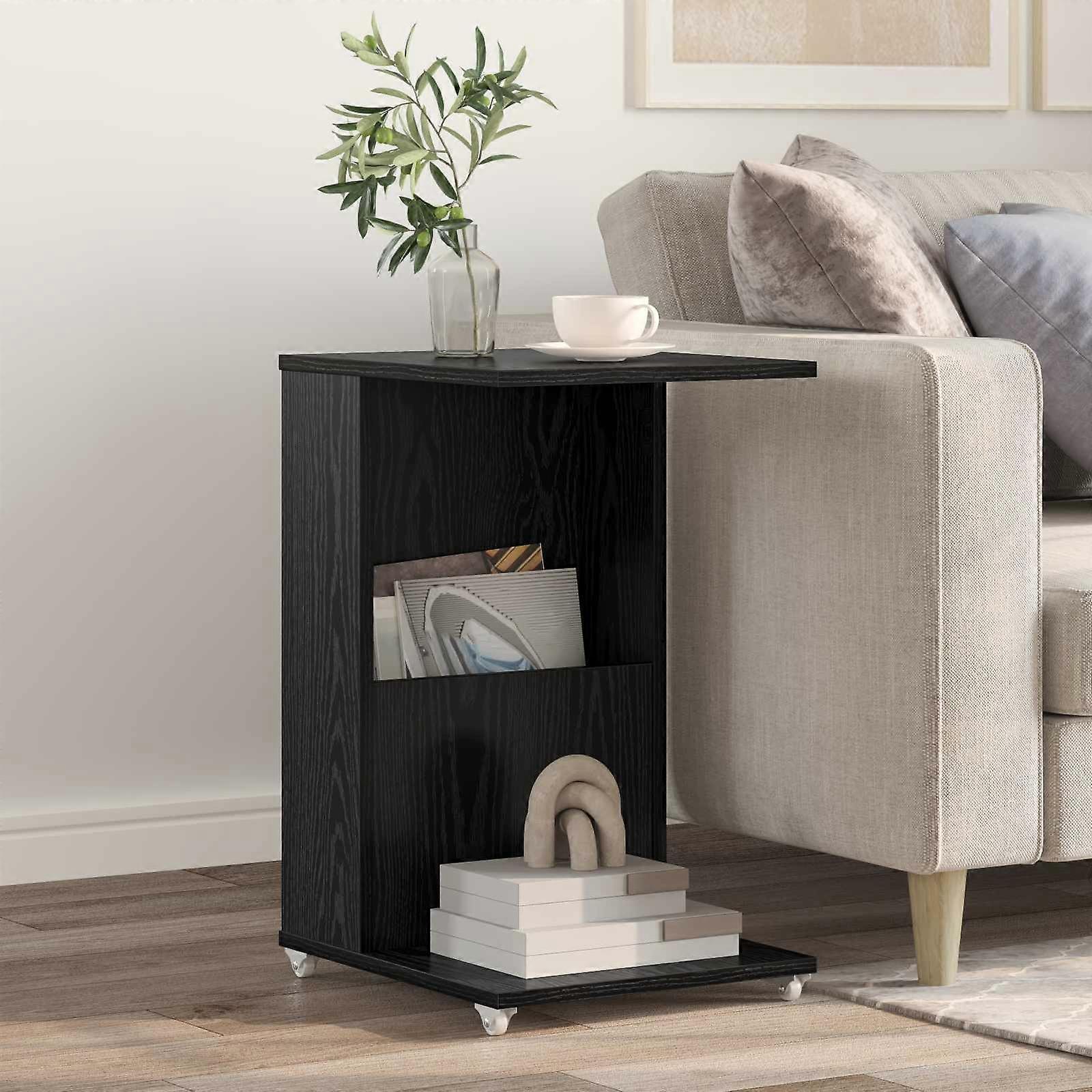 Beistelltisch Mit Rad Schwarz Eichen-Optik 40 x 35 x 60 cm