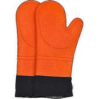 Silicone Heat Resistant Oven Gloves Extra Long Non -slip Oven Mittens (orange, 1 Pair)