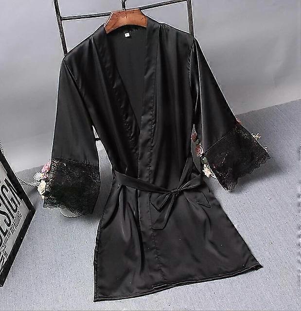 Silk Bath Robe-Elegant Lace Kimono Sleepwear for Women-XL