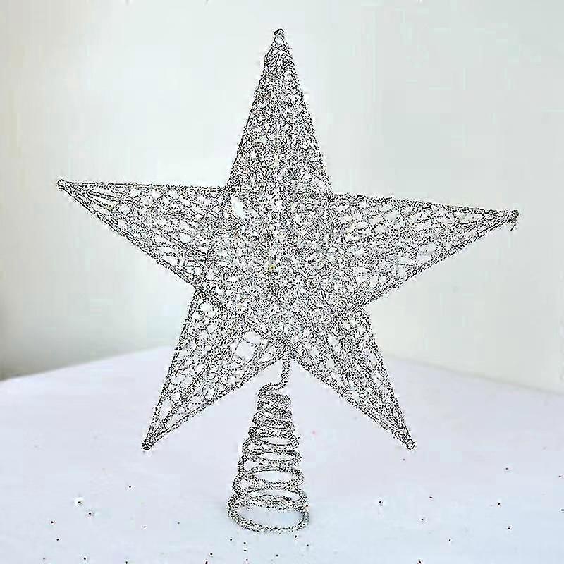 Silver Christmas Tree Star Christmas Decoration Topper Glitter Christmas Hanging Christmas Tree Decoration 12cm
