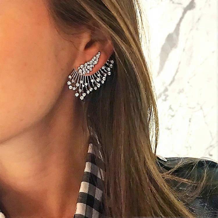 Silver Flower Asymmetric Stud Earrings-Diamond-Shape Design,1 PC by