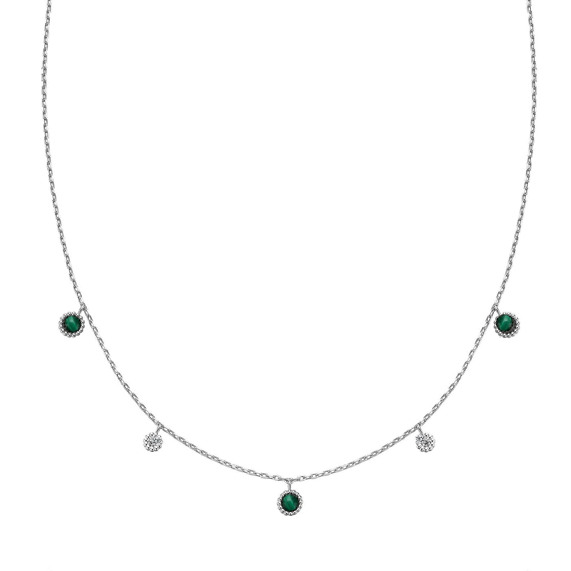 Ania Haie Silver Malachite Station Necklace N064-03H Elevate your style with the stunning Silver Malachite Station Necklace N064-03H, a perfect embodiment of elegance and playful charm. Crafted by the renowned brand Ania Haie, this necklace features a beautiful combination of eco-friendly lab-created malachite stations and a sleek sterling silver chain. This dazzling piece of jewelry is ideal for both casual outings and special occasions. Its versatility allows you to effortlessly dress it up or down, making it a staple in any jewelry collection. You can wear the necklace alone for a refined look, or layer it with other necklaces to create a trendy, bohemian vibe. Key features include: Exquisite design with three 3mm malachite stations and two sparkling 2mm cubic zirconia accents, ensuring your look remains chic and sophisticated. Adjustable length measuring 40cm with a 7.5cm extender, allowing a customized fit for all necklines. This necklace is not just beautiful; it's also lightweight, weighing only 2.9336 grams, making it comfortable for all-day wear. Crafted from 925 sterling silver and exquisitely plated with rhodium or 14ct gold, it highlights Ania Haie's commitment to quality and sustainability. Whether you're treating yourself or searching for the perfect gift, the Silver Malachite Station Necklace is an exceptional choice. Each piece is delivered beautifully packaged, ensuring it arrives ready for gifting. Indulge in the luxury of the Silver Malachite Station Necklace, and embrace a touch of elegance that sets you apart.