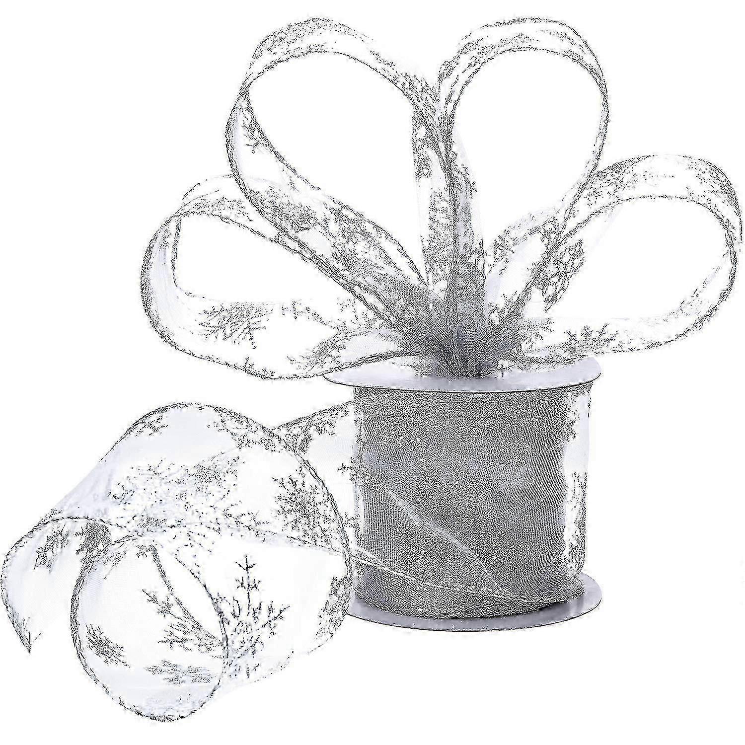 Silver Metallic Christmas Ribbon 10m - Sequined Snowflake Gift Wrap Decoration