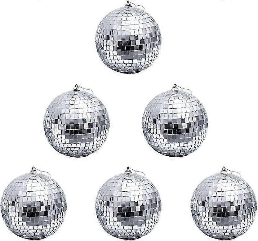 Silver Mirror Ball Baubles Christmas Tree Bauble Disco Ball for Home Party Christmas Wedding Decoration Lighting Effect6pcs-6cm