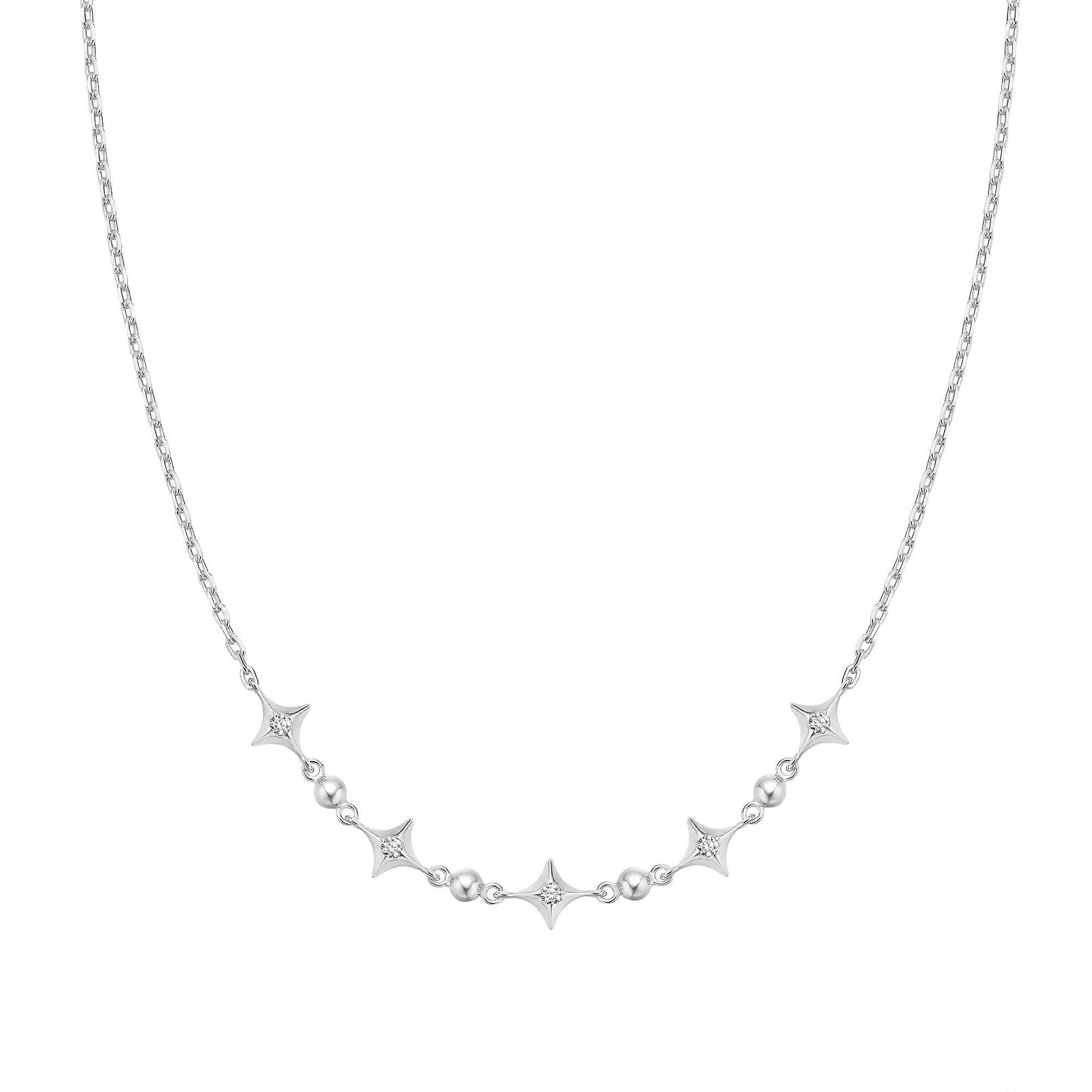 Ania Haie Silver Sparkling Star Station Necklace N064-04HElevate your accessory game with the Ania Haie Silver Sparkling Star Station Necklace N064-04H. This stunning necklace showcases the perfect blend of whimsical charm and luxurious elegance, making it an essential addition to your jewelry collection.Crafted from high-quality 925 Sterling Silver, this necklace is plated with Rhodium, enhancing its durability while ensuring a brilliant shine. The standout feature of this captivating piece is the array of sparkling stars and round beads that dance along the chain, creating a mesmerizing effect that is sure to turn heads.Key Features: Length of 38cm with a 5cm extender for customizable wear, allowing you to adjust it to your desired length. Accentuated with 10 sparkling cubic zirconia stones, each measuring 1.9mm, resulting in an eye-catching display of glimmer. This necklace is not just a piece of jewelry; it’s an expression of your unique style. Whether worn alone for a minimalist look or layered with other chains for a more dramatic effect, it makes for a bold fashion statement that resonates with both fun and sophistication.The Ania Haie Silver Sparkling Star Station Necklace is also the perfect gift for those special occasions, beautifully packaged in a chic Ania Haie pouch or box. Show your loved ones how much they mean to you or treat yourself to a touch of luxury.With its playful design and luxurious craftsmanship, this necklace embodies a classy yet daring aesthetic. Don't miss out on the chance to own a piece from the award-winning 'Emerging Jewellery Brand of the Year' from the 2019 Professional Jeweller Awards. Shine bright and embrace your sparkle with this exceptional necklace.Discover the world of Acotis Diamonds, where exceptional craftsmanship and timeless elegance come together to create jewellery designed to be treasured for a lifetime. Every piece in our collection is thoughtfully curated and masterfully finished, reflecting our commitment to quality, artistry, and enduring style. From radiant diamonds to lustrous precious metals and contemporary designer creations, Acotis Diamonds offers jewellery that celebrates individuality, sophistication, and the beauty of fine detail. Our range is crafted using only the finest materials, ensuring every item meets the highest standards of brilliance and durability. Whether it’s the sparkle of meticulously cut diamonds, the rich sheen of gold and sterling silver, or the vibrant hues of carefully selected gemstones, each piece is chosen to deliver exceptional clarity and lasting allure. We partner with leading jewellery designers and trusted global brands to bring you collections that blend modern aesthetics with classic inspirations, offering something to suit every personality and occasion.At Acotis Diamonds, we believe jewellery should be as meaningful as it is beautiful. That’s why we focus on craftsmanship that captures life’s most precious moments—whether it’s a gift to mark a milestone, a token of affection, or a personal investment in everyday luxury. Our designers pay close attention to every curve, facet, and setting, ensuring unmatched comfort, balance, and visual appeal. Each piece undergoes rigorous quality checks, so you can feel confident that your jewellery is made to endure, shine, and be cherished for years to come. From elegant bracelets and necklaces to statement earrings, refined rings, and collectible charms, our diverse range allows you to express your style with effortless sophistication. Whether you prefer understated minimalism, bold contemporary design, or timeless traditional beauty, Acotis Diamonds provides jewellery that enhances every moment with subtle glamour and refined detail. Experience the artistry of fine jewellery with Acotis Diamonds—where superior craftsmanship, exceptional quality, and thoughtful design come together to create pieces that truly shine.