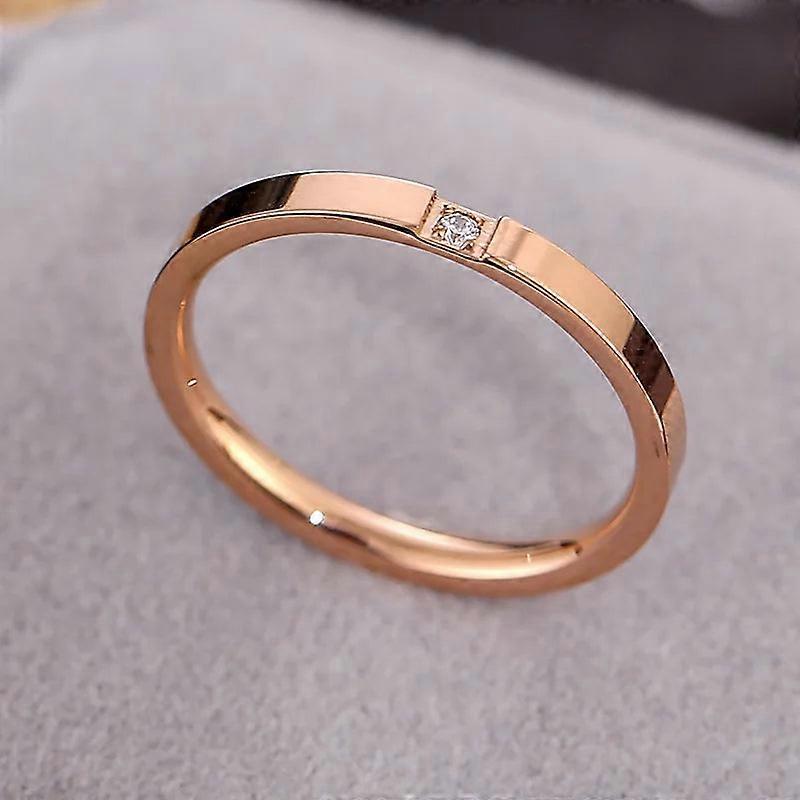 Simple 2mm Titanium Steel Couple Rings With Rhinestone Wedding Band Size 4-10