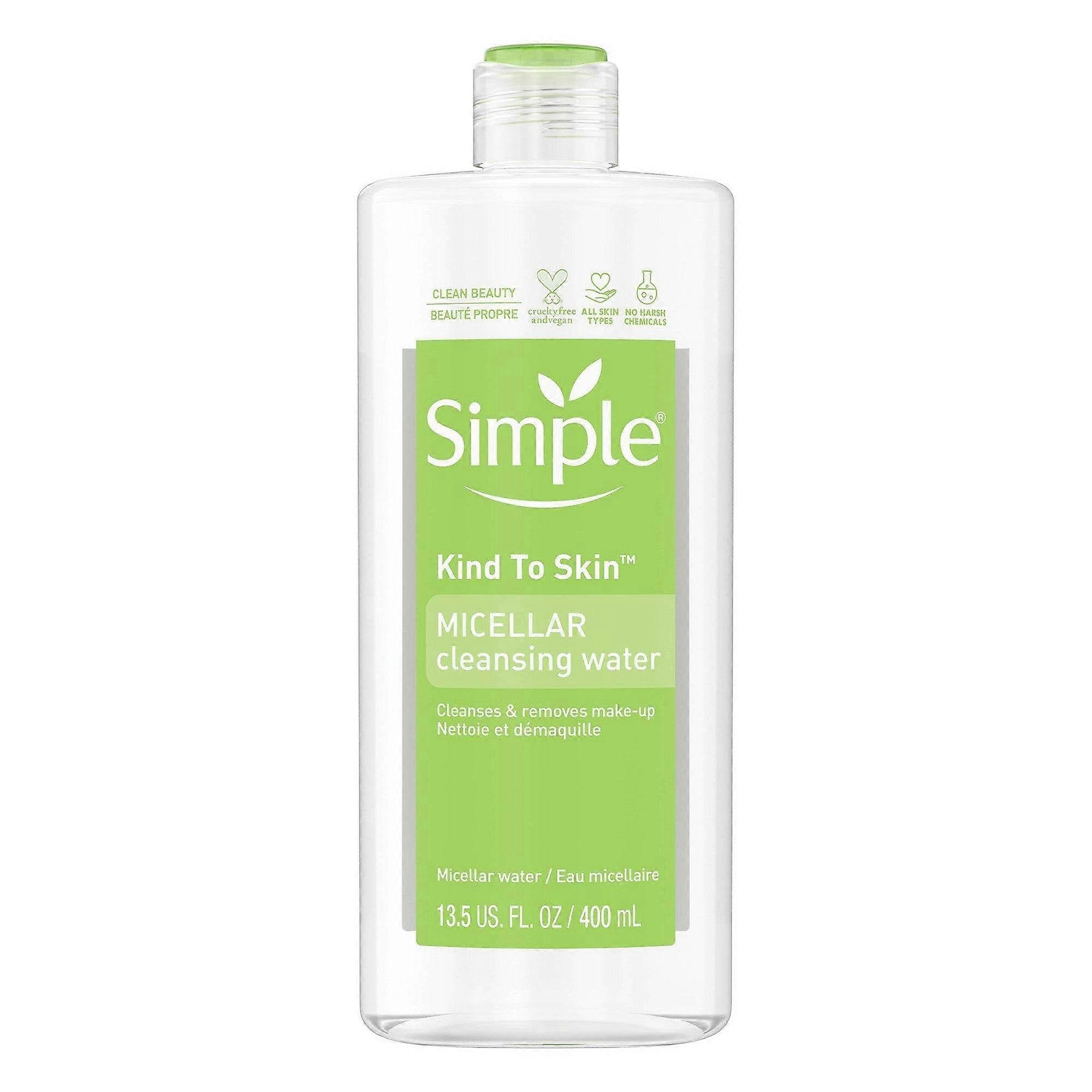 Simple Micellar Cleansing Water is our most advanced yet gentle facial cleanser to date. A favorite among make-up artists and beauty editors, this innovative facial cleanser contains no artificial perfumes or dyes and no harsh chemicals that can upset your skin. It is made with skin-loving ingredients perfect for all skin types, including Vitamins B3 and C and Triple Purified Water, our purest possible water. Micellar Cleansing Water from Simple helps remove contaminants known to irritate skin and leaves skin clean, fresh, and instantly hydrated. The many beauty benefits offered by Simple Micellar Water make it easy to see why this gentle facial cleanser should be part of your healthy skincare routine. Micellar Water thoroughly cleanses skin of dirt and impurities – it unclogs pores while working as a make-up remover. Simple Micellar Cleansing Water instantly boosts skin hydration by 90% Apply with a cotton round to cleanse skin with no residue and no rinsing required – skin is left clean and refreshed in one easy step Simple is a complete range of facial skincare products perfect even for sensitive skin. The Simple brand knows that what is left out is as important as what is put in when it comes to gentle, yet effective skincare. The complete Simple range has 18 products, including cleansers, moisturizers, eye care, and wipes. All Simple products have no dyes, artificial perfumes or harsh irritants that can upset skin and contain skin-loving ingredients and added vitamins for natural, healthy-looking skin. Simple products are hypoallergenic, non-comedogenic and pH balanced. Simple Micellar Cleansing Water is our most advanced facial cleanser to date, yet it is gentle on even the most sensitive skin A complete and thorough skin cleanser, Simple Micellar Cleansing Water cleans the skin of dirt and impurities and unclogs pores - it is also formulated for makeup removal Simple Micellar Cleansing Water instantly boosts skin's hydration by 90% Pure cleansing water made with skin-loving ingredients and triple purified water to clean, refresh, and instantly hydrate all skin types Simple Micellar Water contains no artificial perfume or dyes and no harsh chemicals that can upset your skin, so you can thoroughly clean your face and remove makeup with no skin irritation Our facial cleansing water is Dermatologist tested Expiration Date: We have fresh stock each week with exceptional expiration dates prior to JANUARY 2024. Products will expire no later than six months to 1 year after receipt. Product Packaging: Please note that some manufacturer may often change their packaging. This product may arrive different from what is pictured. We will always ship the most up-to-date packaging to our customers. Please contact us if you have any questions about this product or would like to request an older version of this product. Healthcare Disclaimer: Content on this site is for reference purposes only. does not represent or warrant that the nutrition, ingredient, allergen and other product information on our Web or Mobile sites are accurate or complete, since this information comes from the product manufacturers. On occasion, manufacturers may improve or change their product formulas and update their labels.