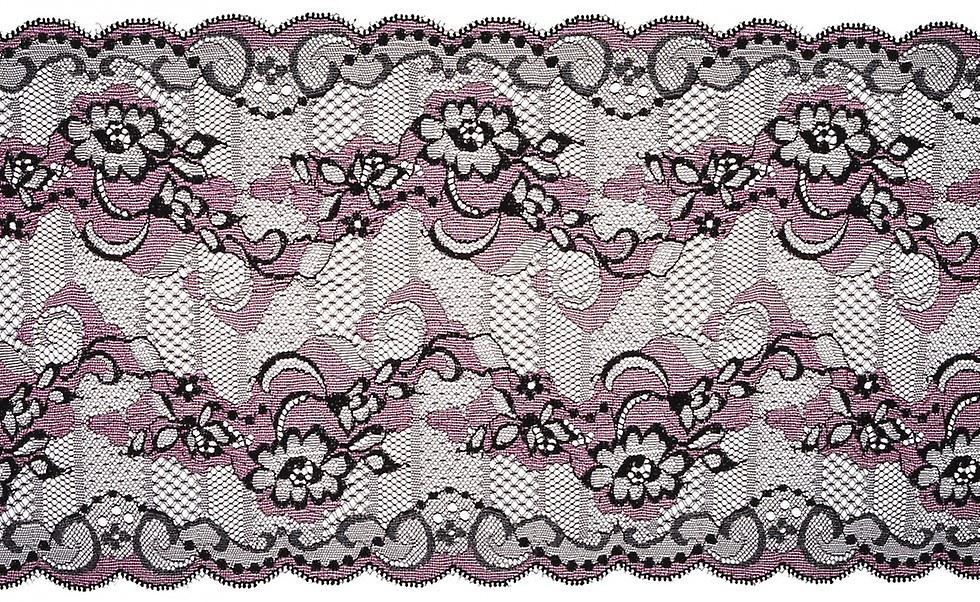 Simplicity 171mm Floral Lace Trim Pink & Black - per metre