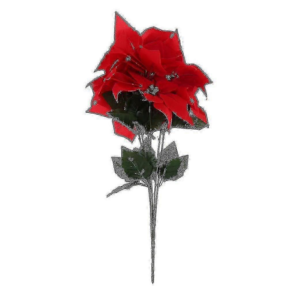 Simulated 7-prong Velvet Cloth Poinsettia Holiday Decoration Silk Flower Scenery Decoration
