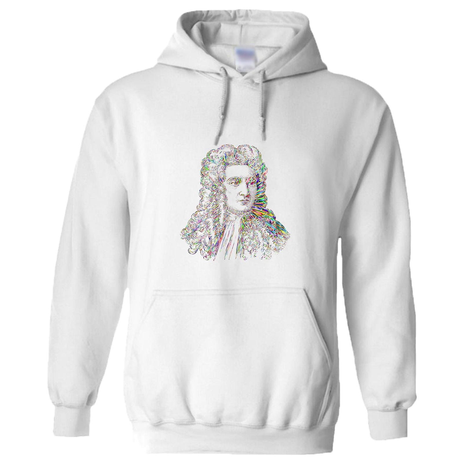 Sir Isaac Newton Portrait Art Science Mens White Hoodie Hooded Sweat Sweater