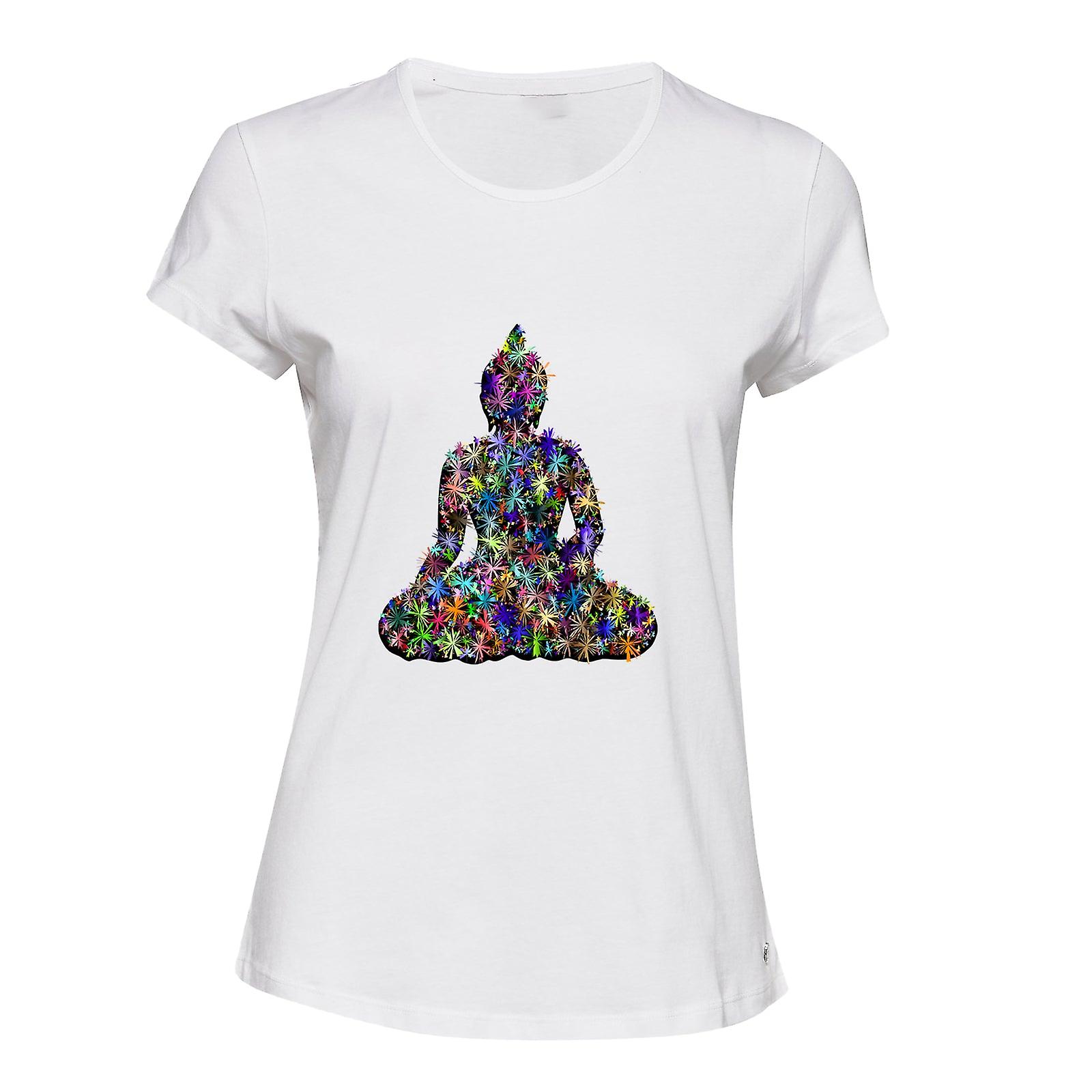 Sitting Rulai Buddha Statue Peace Flower White Ladies Women T Shirt Tee Top