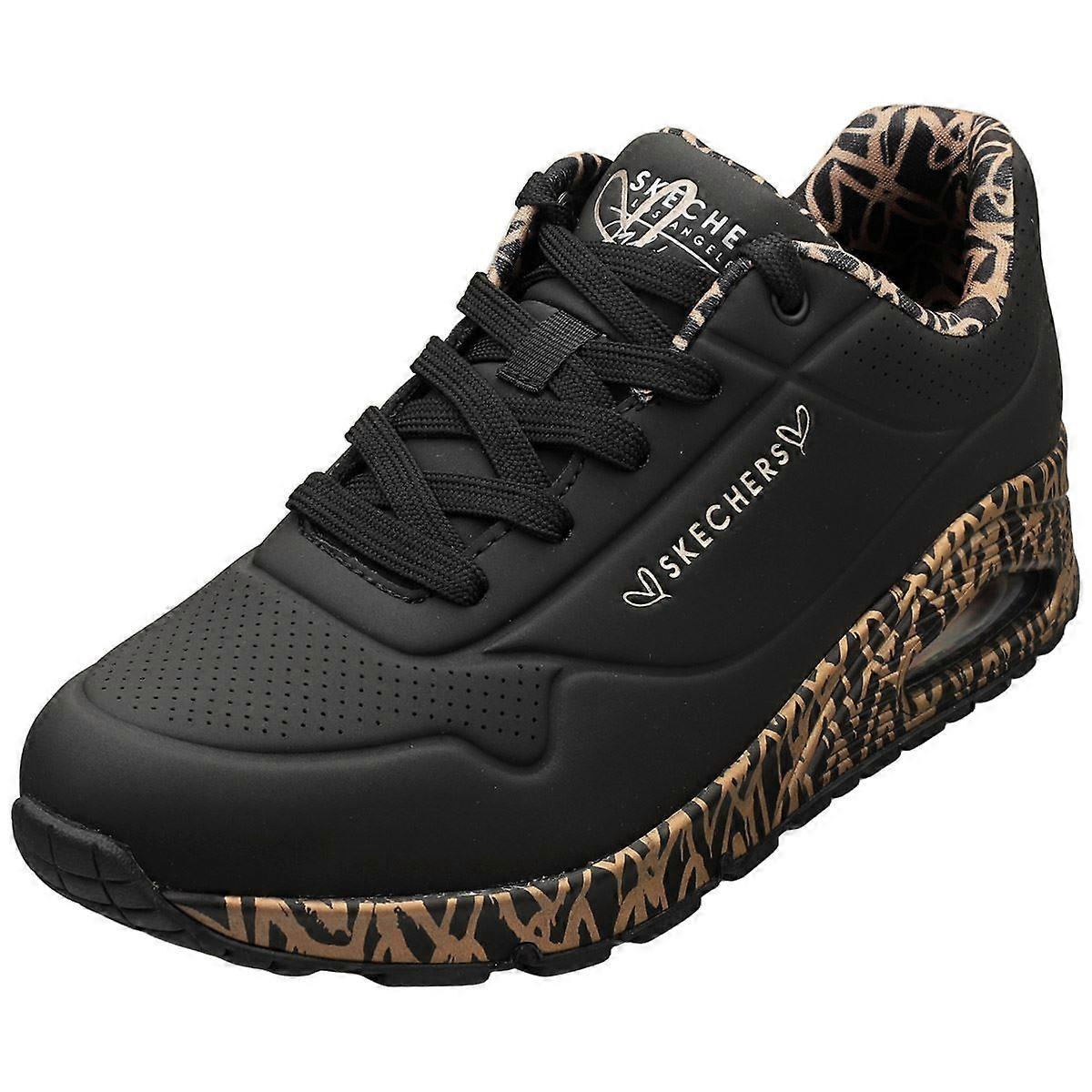 Skechers Los Angeles Uno Loving Love Womens Fashion Trainers in Black Rose Gold