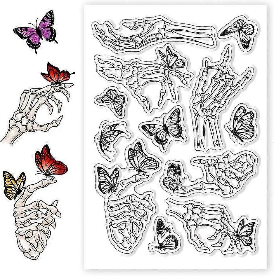 Skeleton Hand Silicone Clear Stamps Butterfly Stamp for DIY Scrapbooking Photo Album Decorative Cards Making Stamps for Holiday Card Making Album Craf