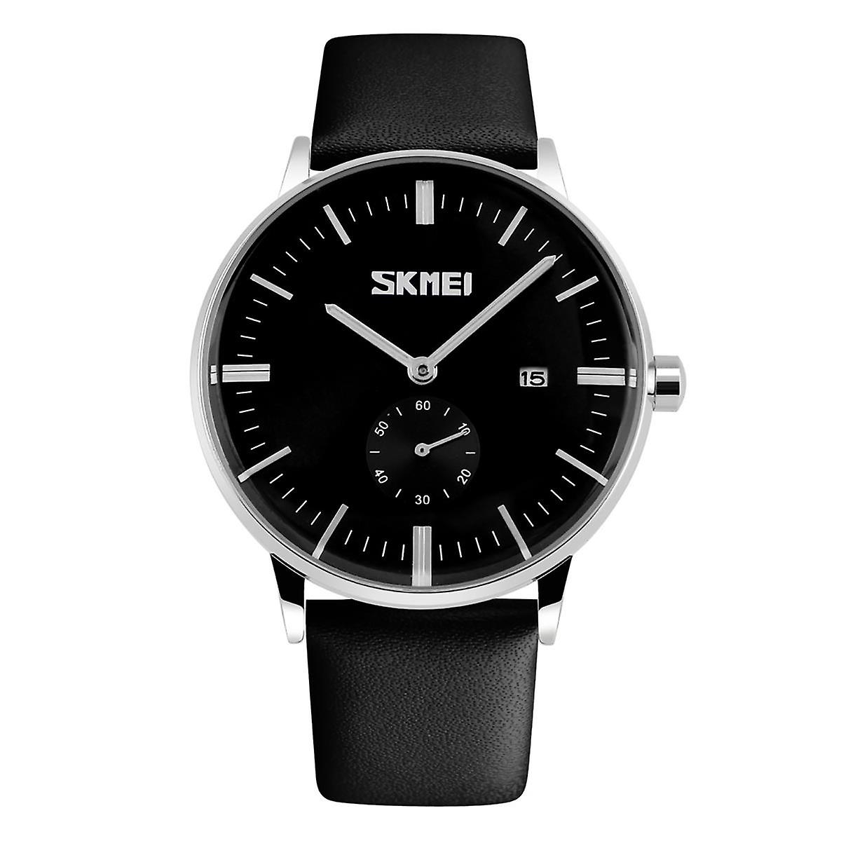 Skmei Mens Black Classic Watch Genuine Comfort Leather Strap Date Display SK9083