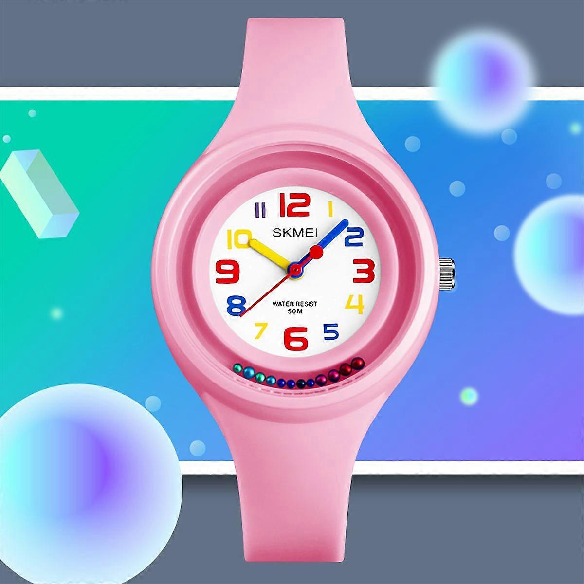 SKMEI Pink Analogue Kids Watch Clear Display Numbers Colours First Watch Rotating Beads Cute Watch Perfect For Ages 5+