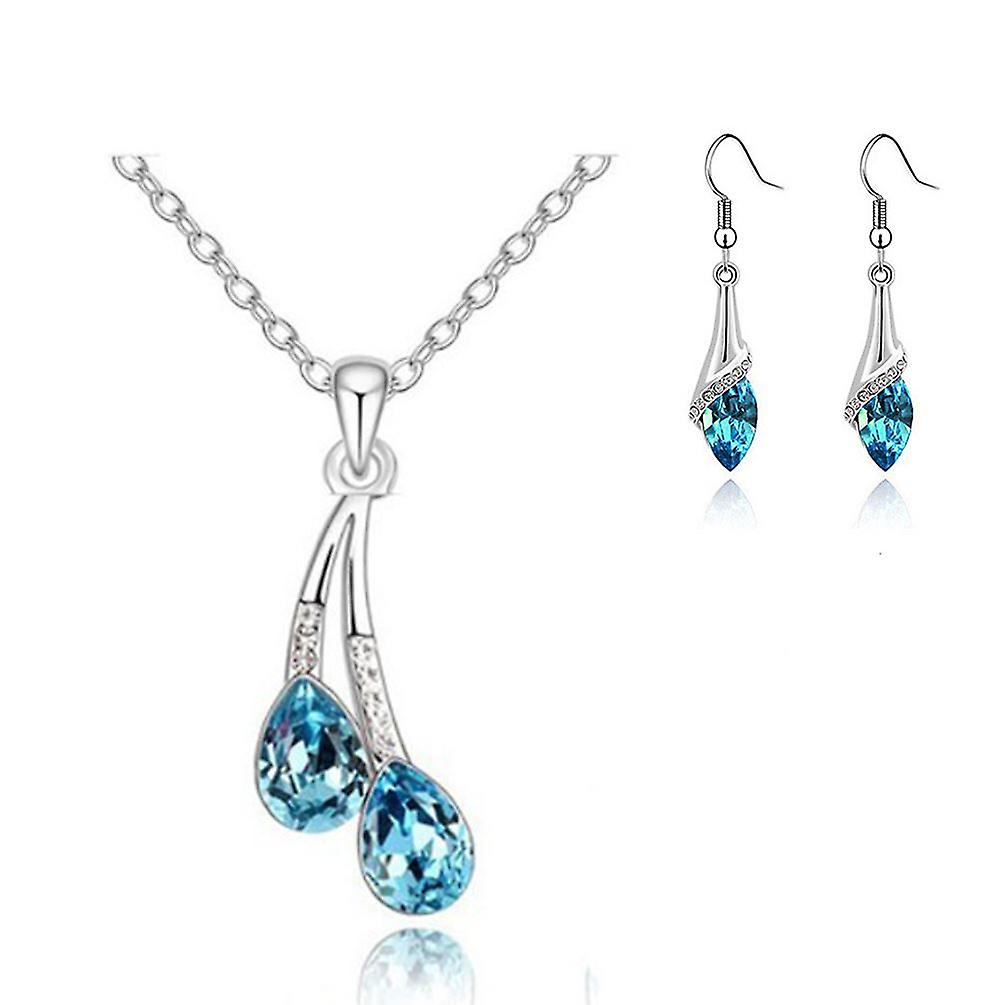 Sky Blue Womens Pendant Necklace And Drop Earrings Set BGCW0064