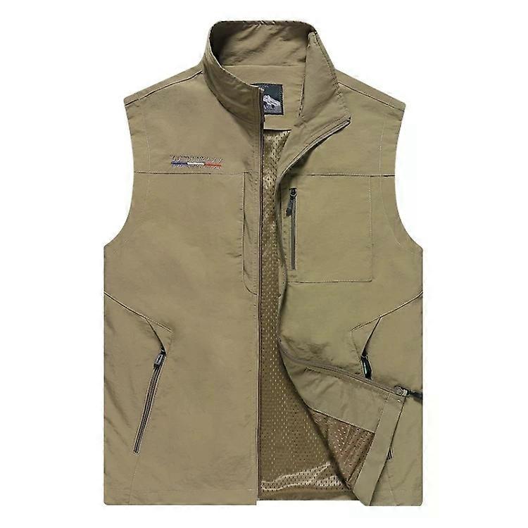 Sleeveless Men’s Vest-Multi-Pocket,Loose Fit,Stand Collar,Khaki,XXXL Khaki,XXXL