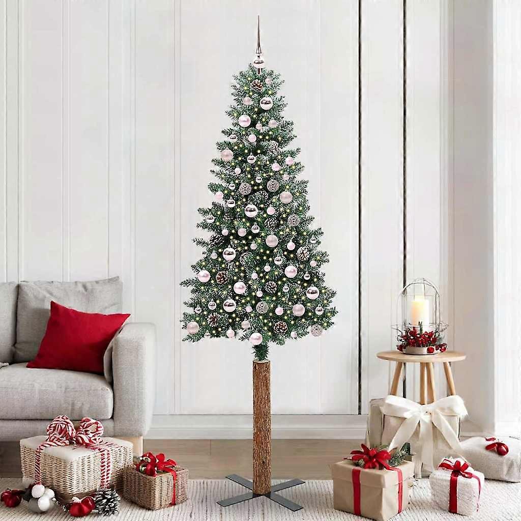 Schlanker Weihnachtsbaum mit 300 LEDs mit Ständer Grün 210 cm