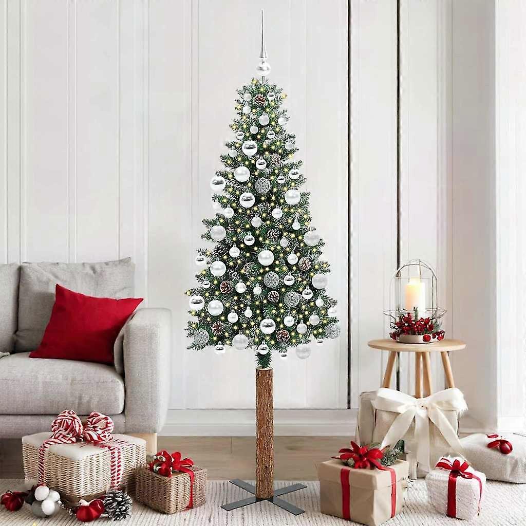Schlanker Weihnachtsbaum mit 300 LEDs Grün und Weiß 180 cm