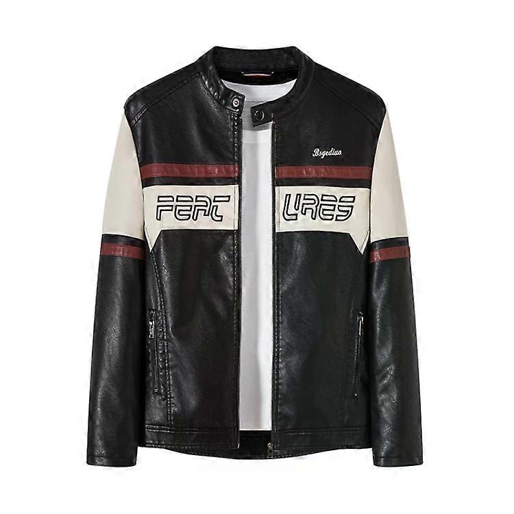Slim Fit Padded Motorbike Leather Jacket -,Black,Size L/XXL Black,XXL