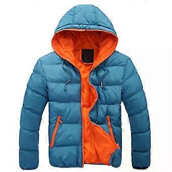 Slim Hooded Cotton Coat for Men-Stylish Black & Orange,XL Size Light Blue + Orange,XL