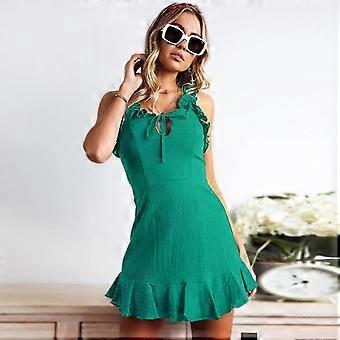 Sling Dress-Solid Color Ruffled Skirt,Fresh Style,XXXL Green Green,XXXL