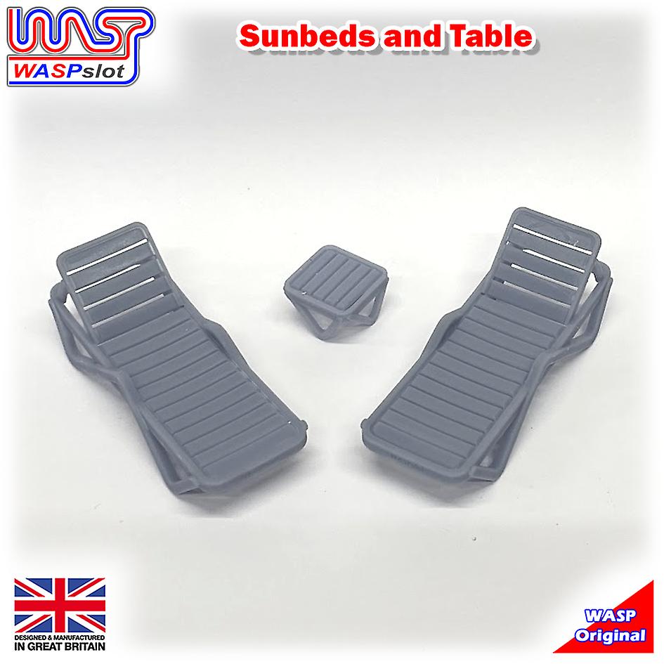 Slot Car Trackside Scenery Sunbed x 2 and Table 1:32 Scale WASP