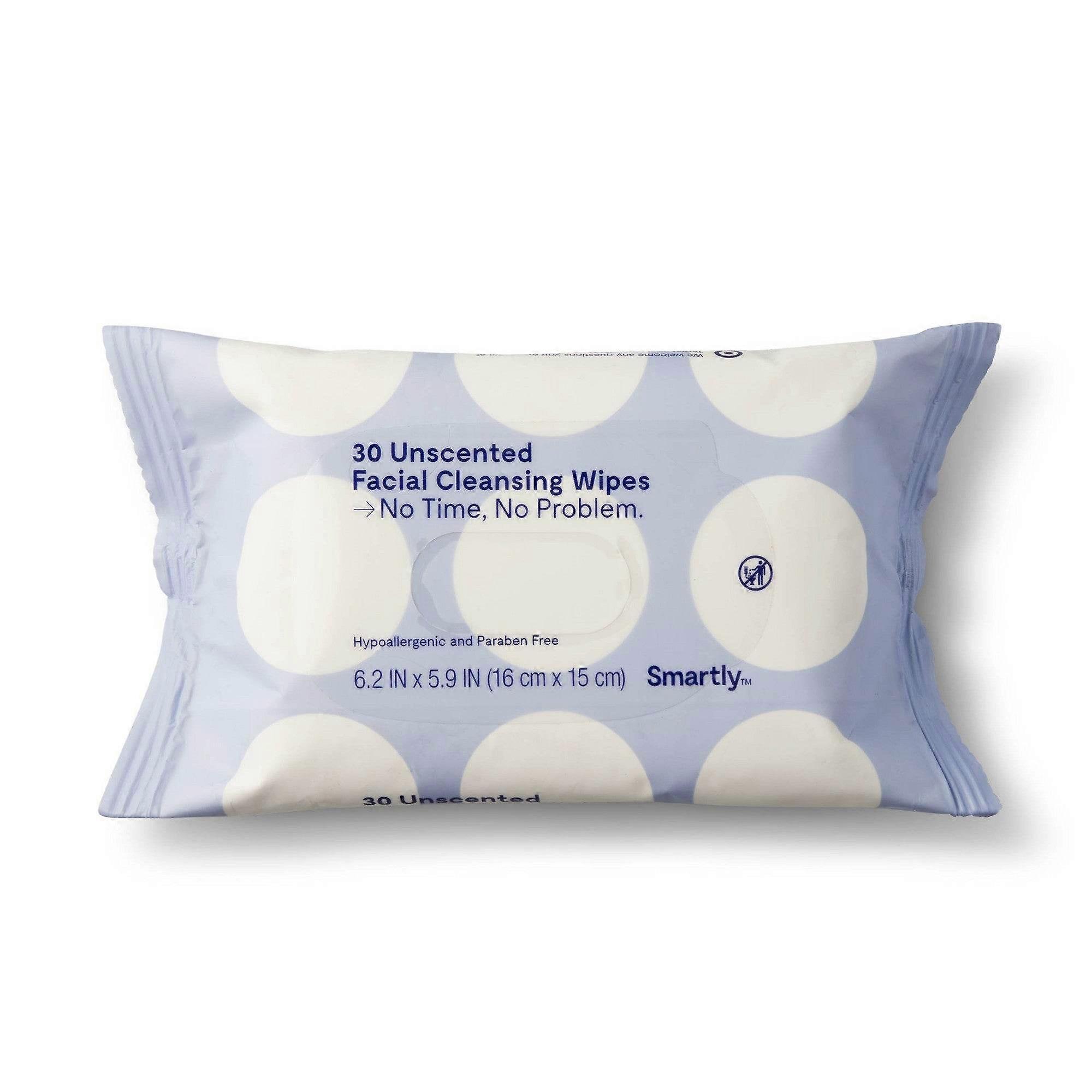 Smartly Facial Cleansing Wipes, Unscented, 30 Ea