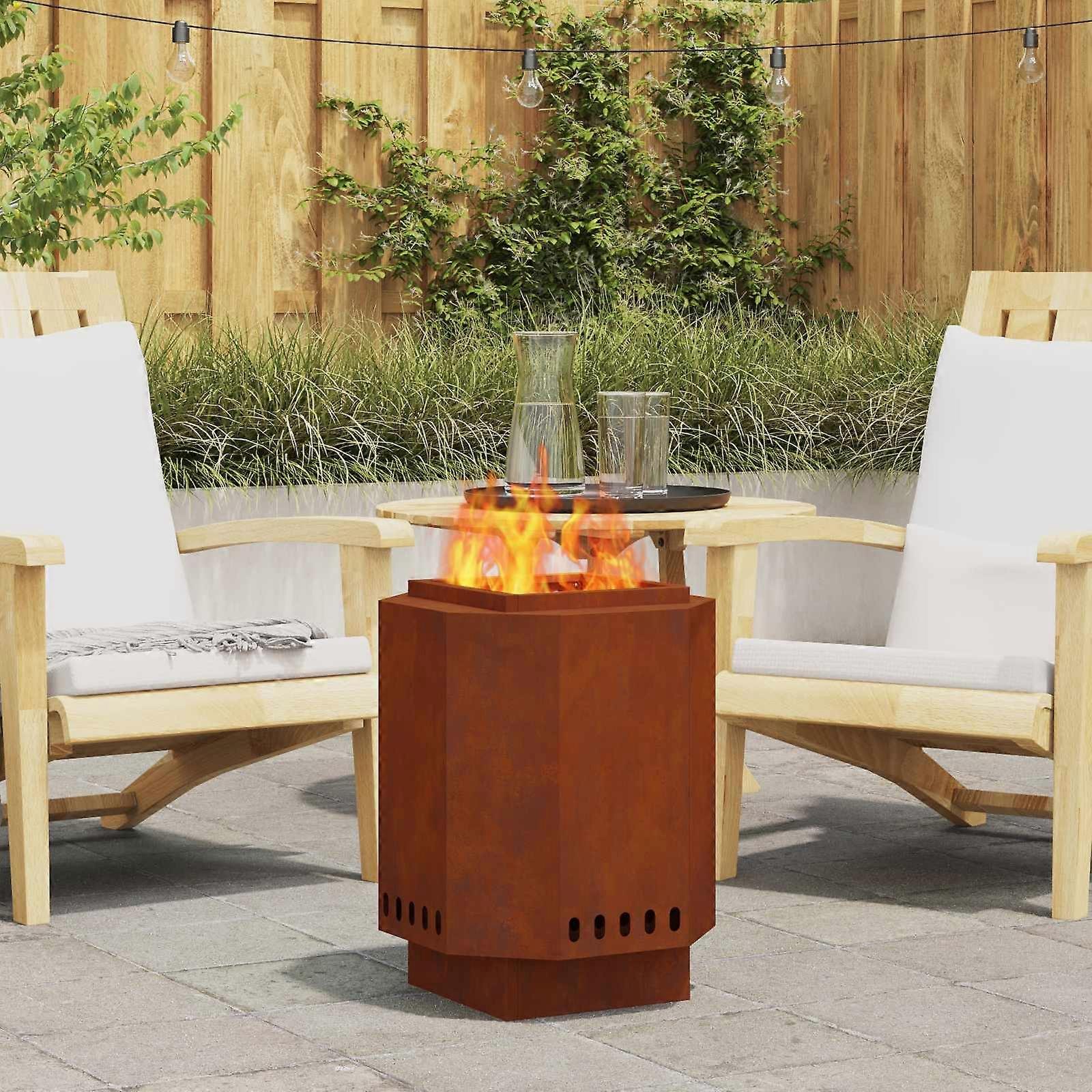 Diese moderne rauchfreie Feuerstelle ist ein echtes Highlight für deinen Außenbereich. Ihr schlankes Design kombiniert Funktionalität mit Ästhetik und macht sie zur idealen Wahl für Garten- und Terrassensettings. Sie spendet Wärme und ist der perfekte Platz für gesellige Zusammenkünfte, ohne dabei auf einen minimalistischen Look zu verzichten, der gut in jeden modernen Garten passt. Die Feuerstelle ist robust und wird dir lange gute Dienste leisten. Robuste Stahlkonstruktion: Diese Feuerstelle besteht aus hochwertigem Stahl, der super widerstandsfähig ist. Der moderne Look passt zu verschiedenen Gartensettings. Rauchfreier Betrieb: Sie minimiert die Rauchproduktion, sodass die Luftqualität im Freien besser bleibt. Ob bei einem Treffen oder einem entspannten Abend, so wird's noch angenehmer unter dem Sternenhimmel. Effiziente Wärmeverteilung: Durch das Design ist die Luftzirkulation perfekt, wodurch die Wärme gleichmäßig verteilt wird. So bleibst du das ganze Jahr über warm und gemütlich. Schicker moderner Stil: Mit ihrem minimalistischen Look fügt sich die Feuerstelle toll in moderne Gartenlandschaften ein. Die klaren Linien machen sie zu einer stilvollen Ergänzung, die nicht überladen wirkt. Benötigt Montage: Der Aufbau erfordert die Mithilfe von zwei Personen und einen Schraubendreher, was für eine sichere Konstruktion sorgt, die dir lange Freude bereitet. Farbe: BraunMaterial: WetterfeststahlGesamtabmessungen: 38 x 38 x 51 cm (L x B x H)Gewicht: 7,6 kgLanglebigMaximale zulässige Temperatur: 600 ℃Perfekt für Zusammenkünfte im FreienDoppelwand LuftzufuhrSekundärverbrennung für saubereren BrennNur für den AußenbereichLieferumfang:1 x FeuerstelleMontage erforderlich: Ja WARNUNG: Verwenden Sie keinen Spiritus oder Benzin zum Anzünden oder Neuanzünden