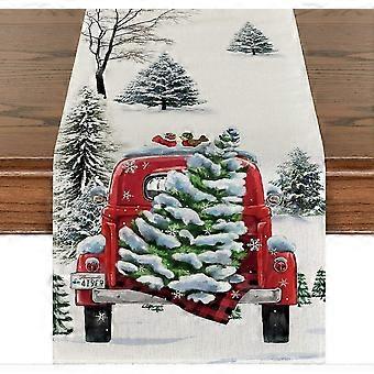 Snow Tree Truck Christmas Table Runner, Seasonal Winter Xmas Holiday Kitchen Dining Table Decoration for Indoor Outdoor Home Party Decor 13 x 72 Inch