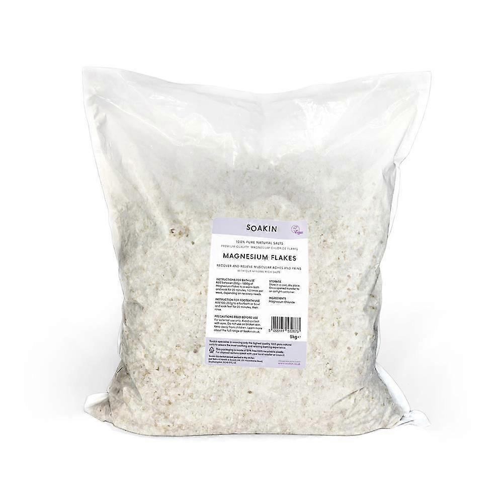 Experience the soothing and restorative power of Soakin Magnesium Flakes, crafted from 100% pure, natural Magnesium Chloride. These premium quality flakes are designed to help you recover and relieve muscular aches and pains, providing a relaxing and rejuvenating bath-time experience.Soakin is dedicated to sourcing only the highest quality natural salts to support your wellness routine. Our magnesium flakes offer a superior way to unwind and support muscle recovery, making them an essential addition to your self-care regimen. Alongside our Magnesium Flakes (Recover), our range includes Dead Sea Salt (Soothe), Epsom Salt (Relax), and Himalayan Salt (Detox), each tailored to enhance your bath experience.Benefits Promotes muscle recovery and relief from aches and pains Supports relaxation and stress reduction Enhances skin hydration and softness 100% natural and free from additives or fillersUsage InstructionsBath Soak:Add between 250g and 1000g of Magnesium flakes to a warm bath. Soak for 20 minutes, 1-2 times per week, depending on your recovery needs.Footbath:Use 100g to 250g of flakes in a footbath or bowl. Soak feet for 20 minutes, then rinse thoroughly.Precautions For external use only Avoid contact with eyes Do not use on broken or irritated skin Keep out of reach of childrenStorageKeep the bag sealed and store in a cool, dry place to maintain product freshness and efficacy.IngredientsMagnesium ChlorideFor larger requirements, our Magnesium Chloride bath salts are also available in 25kg sacks (purchase code JNB445).