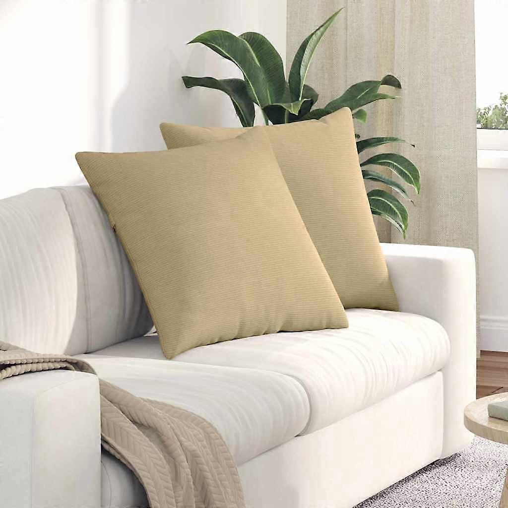 Dieses Paar modernen Sofakissen bringt Stil und Komfort in dein Zuhause mit ihrem weichen Cordstoff. Sie sind schlicht und elegant und passen perfekt zu jeder Wohnkultur. Egal ob auf deinem Wohnzimmersofa, im Schlafzimmer oder in der Lounge, diese Kissen verleihen deinem Zuhause mit ihrer samtigen Textur einen Hauch von Raffinesse. Sie sind ideal, um die einladende Atmosphäre deines Wohnzimmers zu verbessern oder deinem Schlafbereich ein plüschiges Gefühl zu verleihen. Perfekt zum Entspannen nach einem langen Tag, bieten diese Kissen Komfort und Stil in jedem Raum. Materialien: Aus hochwertigem Cordstoff, der für seine Langlebigkeit und luxuriöse Haptik bekannt ist. Das Material sorgt für ein gemütliches Erlebnis und verleiht deinem Wohnraum Eleganz. Pflegeleicht und samtig, sieht es gut aus und fühlt sich hochwertig an. Polyester wird zusätzlich verwendet, um Stärke und Widerstandsfähigkeit zu garantieren, sodass diese Kissen eine langlebige Ergänzung für dein Zuhause sind. Enthaltene Komponenten: Im Paket sind zwei ultra-komfortable Sofakissen enthalten. Jedes Kissen hat eine strapazierfähige Polyesterfüllung, bekannt für ihre Leichtigkeit und Weichheit, die langanhaltenden Komfort bietet. Die Füllung macht die Kissen plüschig und ideal zum Entspannen oder als Deko-Elemente. Funktionen / Funktion / Design: Diese Kissen haben einen praktischen Reißverschluss, der das Abziehen und Reinigen der Bezüge erleichtert. Die abnehmbaren Bezüge halten alles sauber und frisch und kombinieren Funktionalität mit Stil. Im modernen Design werten sie die ästhetische Anziehungskraft deiner Wohnung auf. Empfohlene Verwendung: Optimal für den Innenbereich, besonders in Wohnzimmern, Schlafzimmern oder Home Offices. Sie lassen sich ganz unkompliziert mit verschiedenen Wohnstilen kombinieren und bieten sowohl charmante Deko als auch Komfort. Ihre Vielseitigkeit macht sie geeignet für diverse Möbelarrangements von Sofas bis zu Sesseln und verbessern jeden Raum instant. Pflege & Wartung: Um ihr tolles Aussehen zu bewahren, sollten diese Kissen nicht scharfen Chemikalien und Scheuermitteln ausgesetzt werden. Die abnehmbaren Bezüge sind leicht zu reinigen, und sie sind nur für den Innenbereich gedacht, was ihre Langlebigkeit sichert und ein makelloses Aussehen erhält.