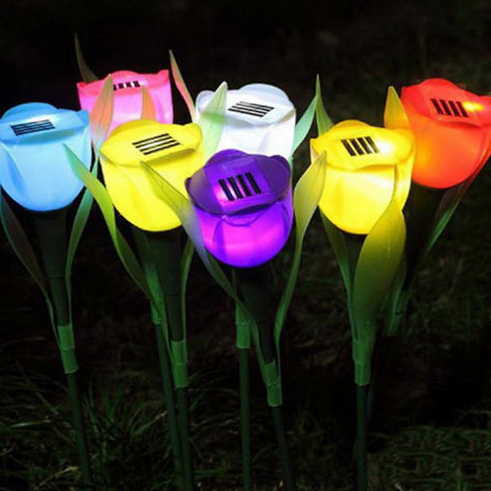 Solar Flower Shaped Lawn Light Solar Outdoor LED Tulip Night Artificial Flowers Lights for Patio Lawn Garden Yard Decoration