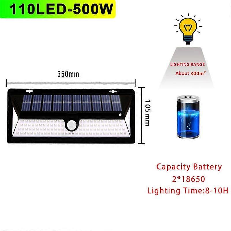 Solar-powered 110 Led Motion Sensor Wall Light, 8800mah, Waterproof Outdoor
