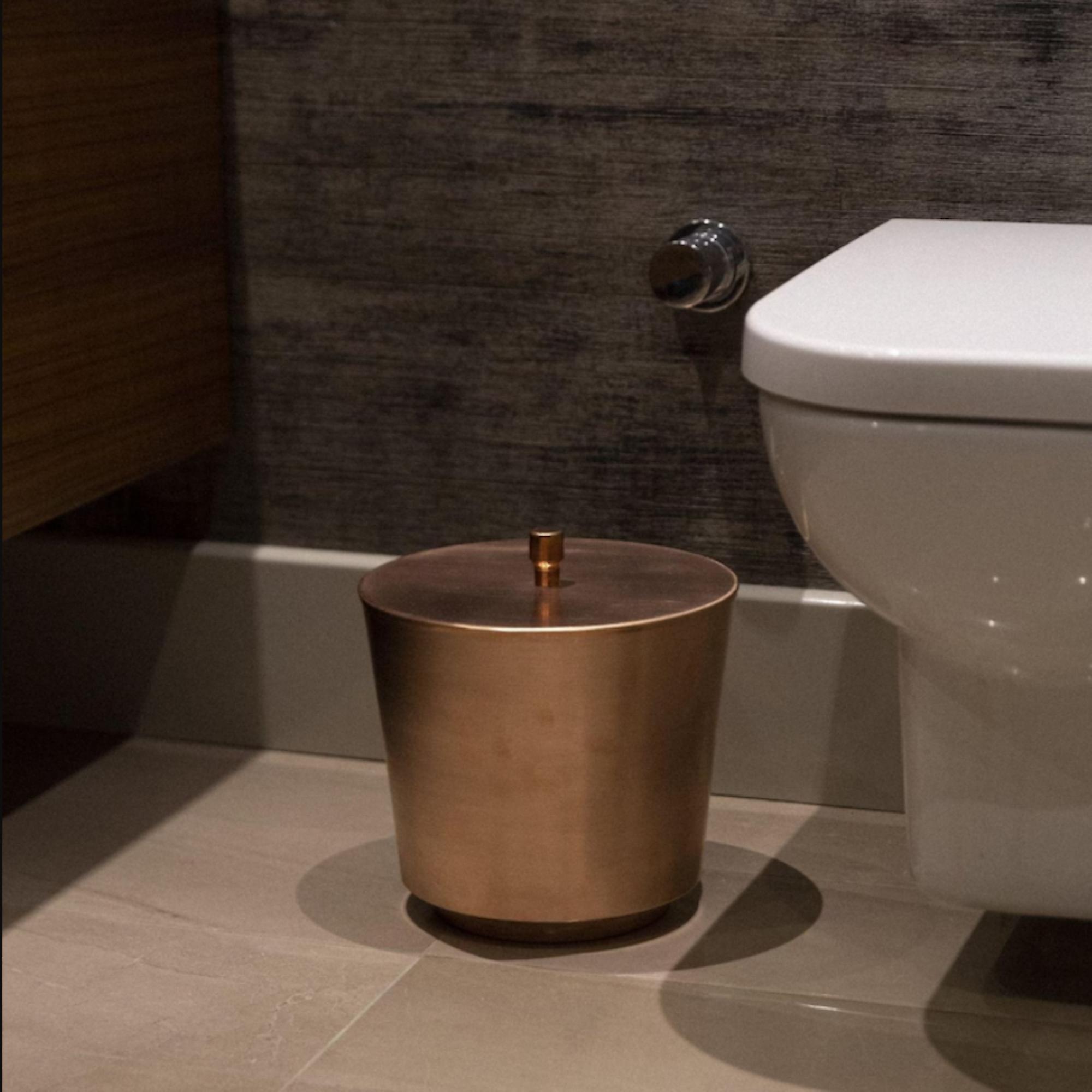 Solid Copper Bathroom Trash Bin With Lid | Handmade Copper Bathroom Accesories
