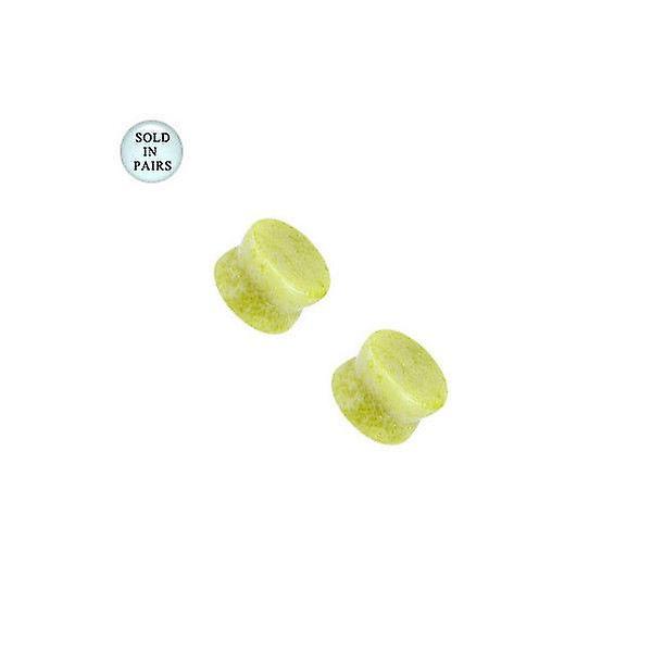 Solid Lemon Jade Double Flared Plugs - 8 Gauge to 00G Description This is a beautiful lemon jade flared plug.The sized available are 00 gauge, 0 gauge, 2 gauge, 4 gauge, 6 gauge, or 8 gauge.Sold in pairs.Do not expose to direct sunlight.Always keep in a dry and well-ventilated area.Organic material is heat and moisture sensitive and can warp, swell, or crack, if not cared for properly.