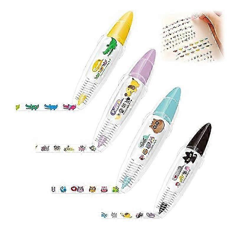 Cute Animals Press Type Decorative Pen 4Pcs Scrapbooking Diary Decorative Correction Tapes
