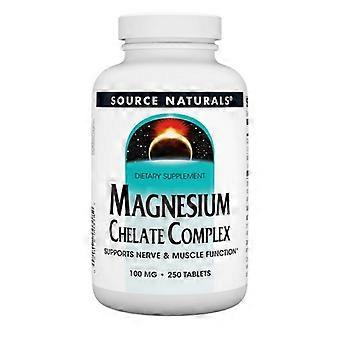 Source Naturals Magnesium chelate,100 mg ,250 Tabs (Pack of 6)