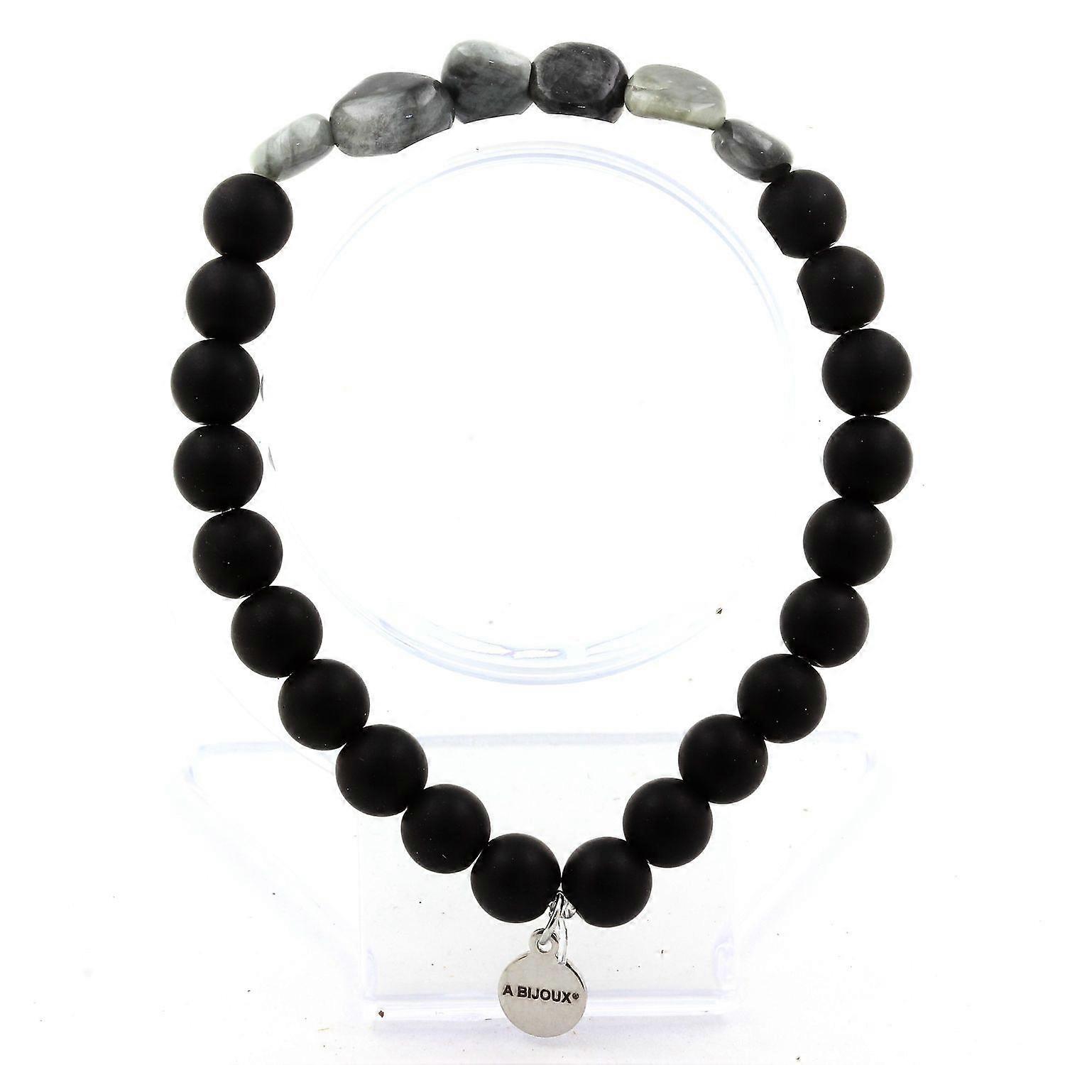 South African Hawk Eye Bracelet + 8 mm Matte Black Onyx Beads
